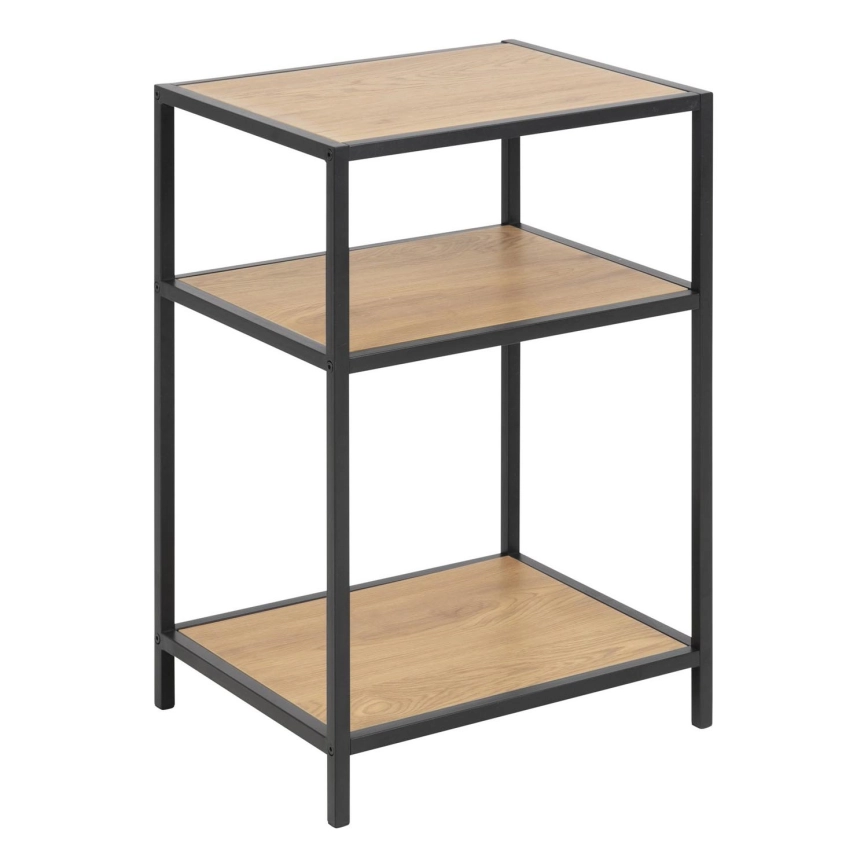 • Horní deska a 2 police z matného craftu, podstavec z matné černé oceli s drsným práškovým nástřikem.