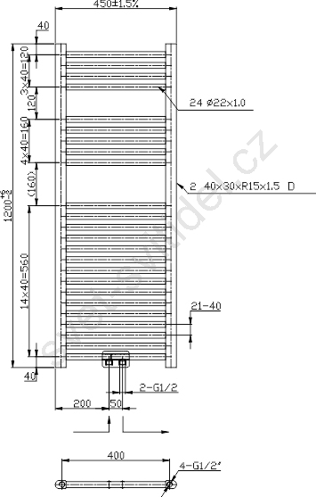 Novaservis - Koupelnový žebříkový radiátor 318W/230V 120x45 cm lesklý chrom rovný