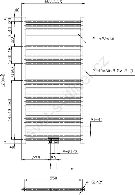 Novaservis - Koupelnový žebříkový radiátor 423W/230V 120x60 cm lesklý chrom rovný
