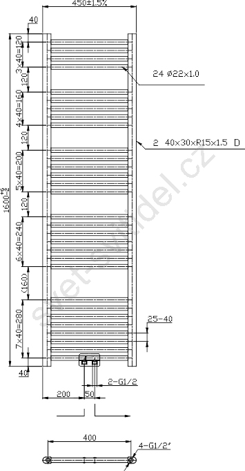 Novaservis - Koupelnový žebříkový radiátor 423W/230V 160x45 cm lesklý chrom rovný