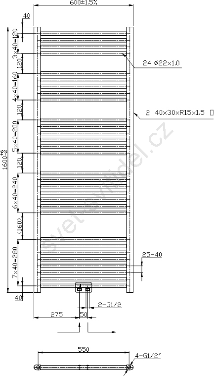 Novaservis - Koupelnový žebříkový radiátor 544W/230V 160x60 cm lesklý chrom rovný