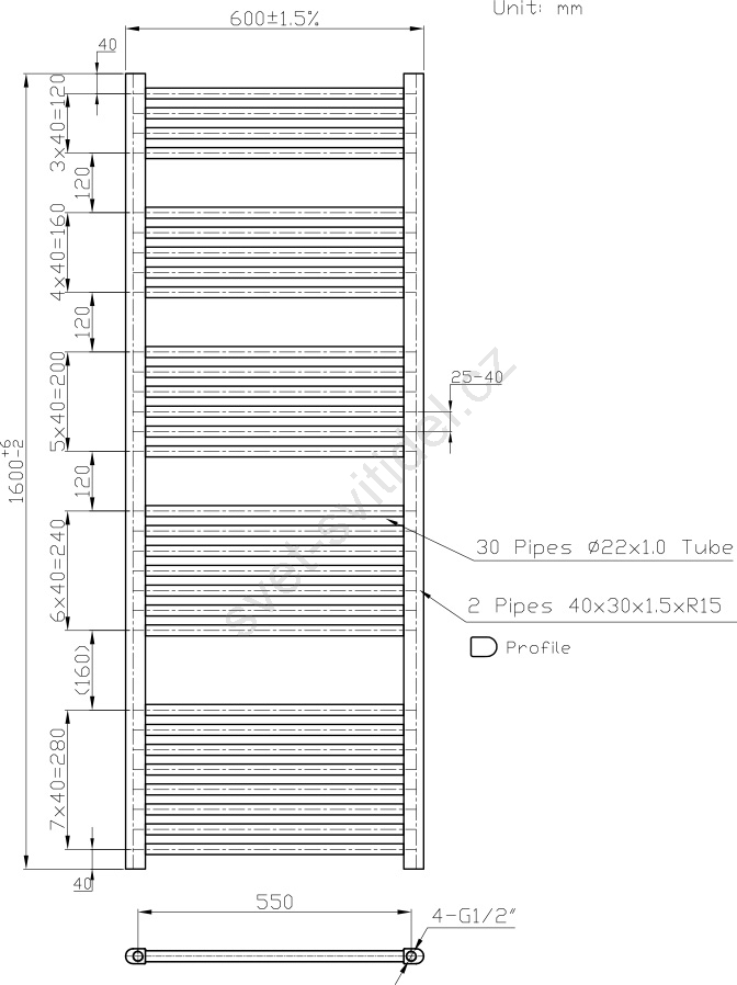 • Průměr trubek: 22 mm.