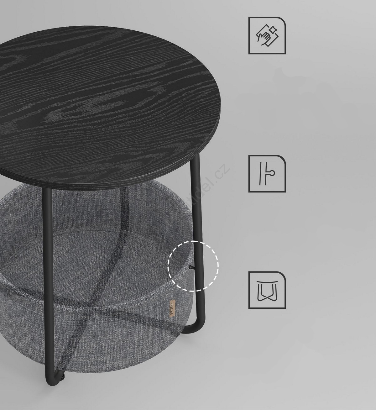• Odkládací stolek NOIRA 45 cm černá/šedá