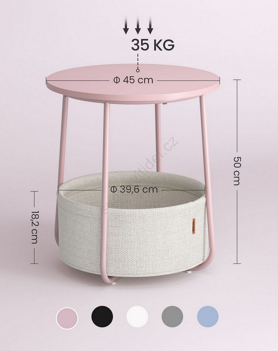 • Disponuje látkovým košíkem ve spodní části o výšce 18,2 cm a průměru 39,6 cm.