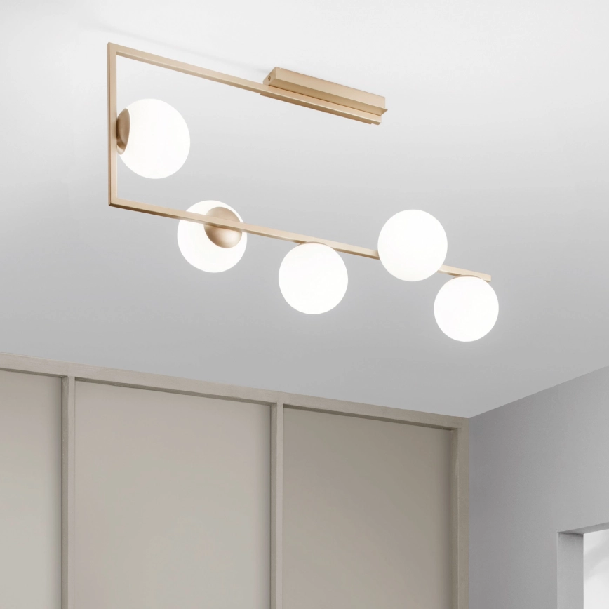 Ondaluce - Lustr na tyči MONILE 5xE14/10W/230V zlatá/bílá