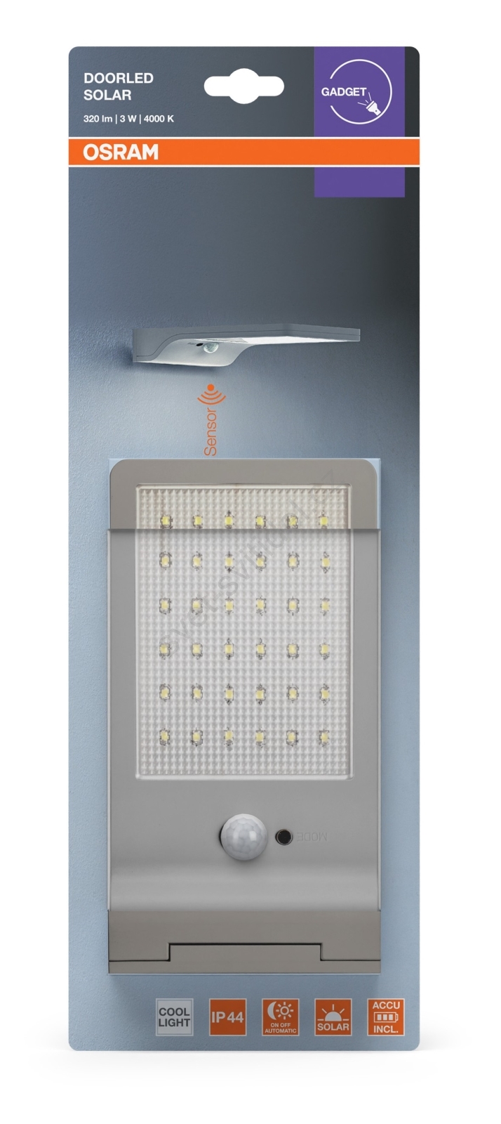 • Osram - LED Solární nástěnné svítidlo se senzorem DOORLED LED/3W/3,3V 2000 mAh IP44 stříbrná