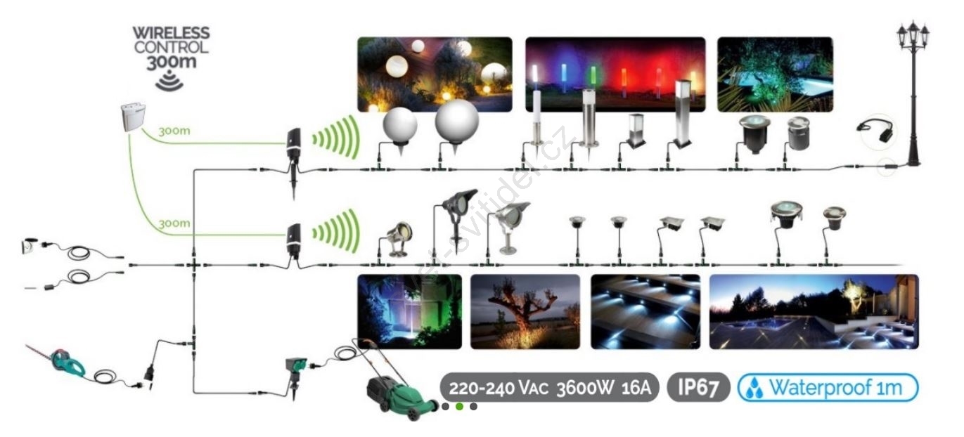 • Pomocí vypínače můžete ovládat osvětlení na vzdálenost až 300 metrů.