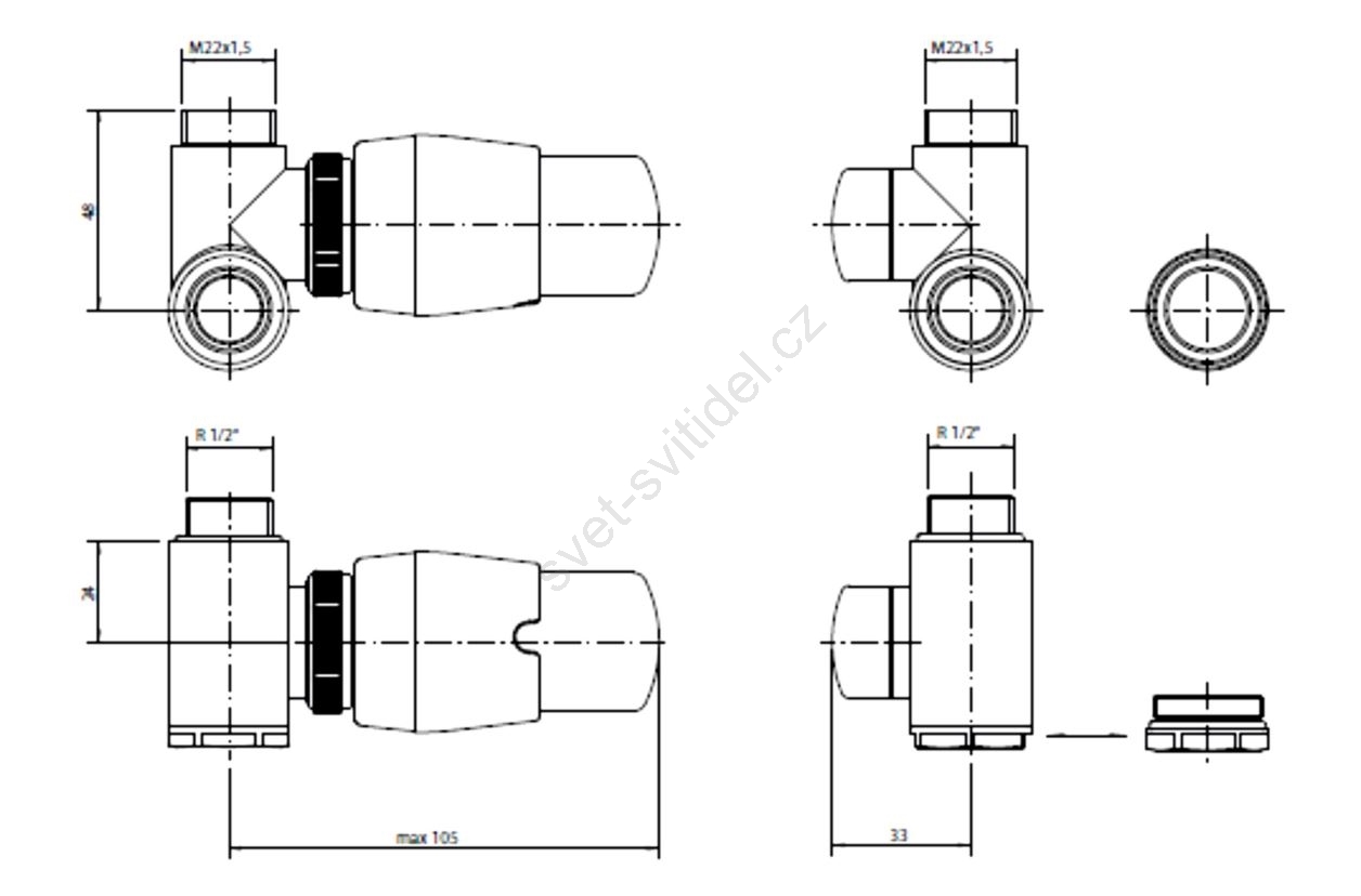• Elektrickou topnou tyč lze instalovat na libovolnou stranu radiátoru přímo do ventilu.