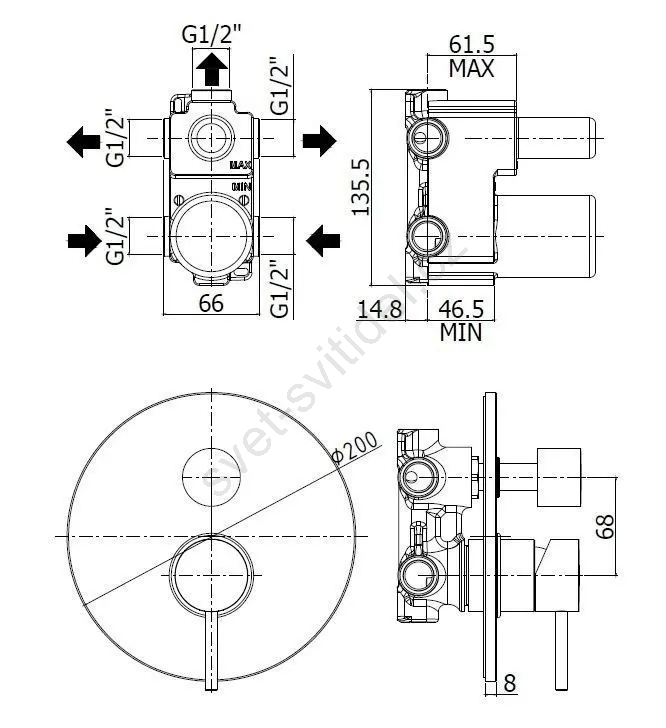 • Přepínač umožní pohodlně volit mezi více vývody sprchy.