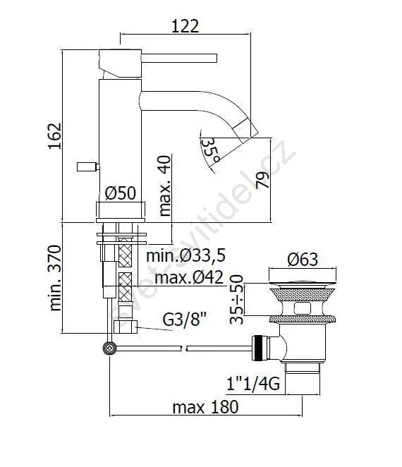 • Stojánková páková umyvadlová baterie s výpustí.