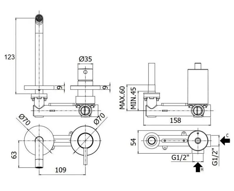 • Pevný výtok pro čistý, minimalistický vzhled.