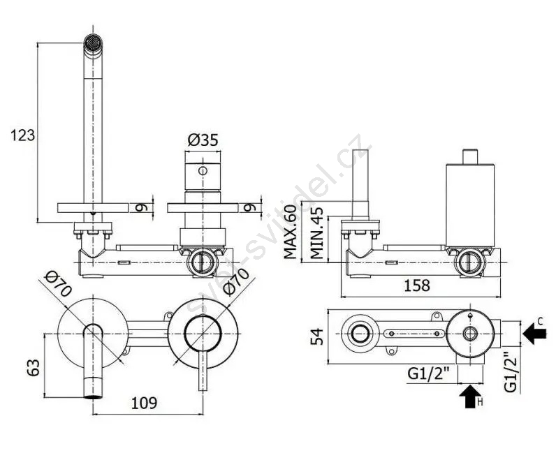 • Výtok vody je pevný a přizpůsobený standardní umyvadlové instalaci.