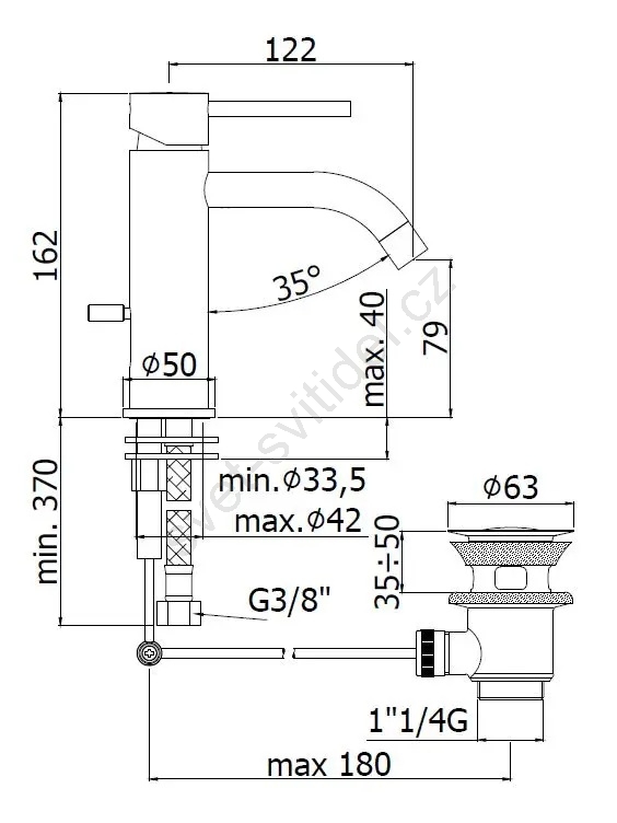 • Stojánková umyvadlová baterie s výpustí.