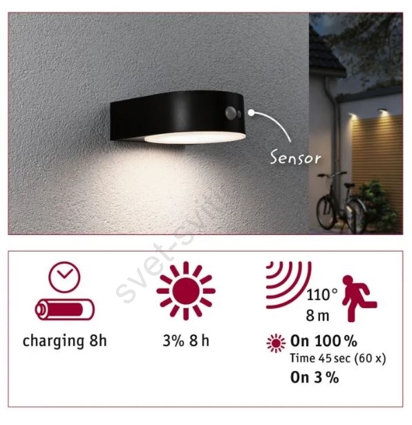 Paulmann 94570 - LED/5,5W IP44 Solární nástěnné svítidlo se senzorem EILEEN 3,7V 2000 mAh