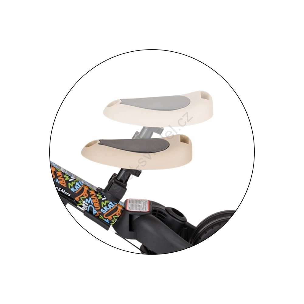 • Nastavitelná řidítka s gumovými rukojeťmi, odnímatelné pedály, nastavitelné sedlo s bezpečnostními pásy.