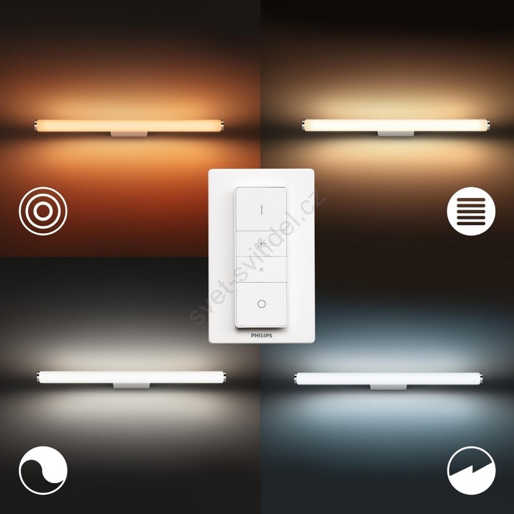 • Součástí balení je dálkový ovladač Hue Dimmer Switch, pomocí něhož můžete jednoduše přizpůsobit intenzitu a teplotu bílého světla v rozsahu 2200K - 6500K a zvolit tak světlo pro požadovanou činnost.