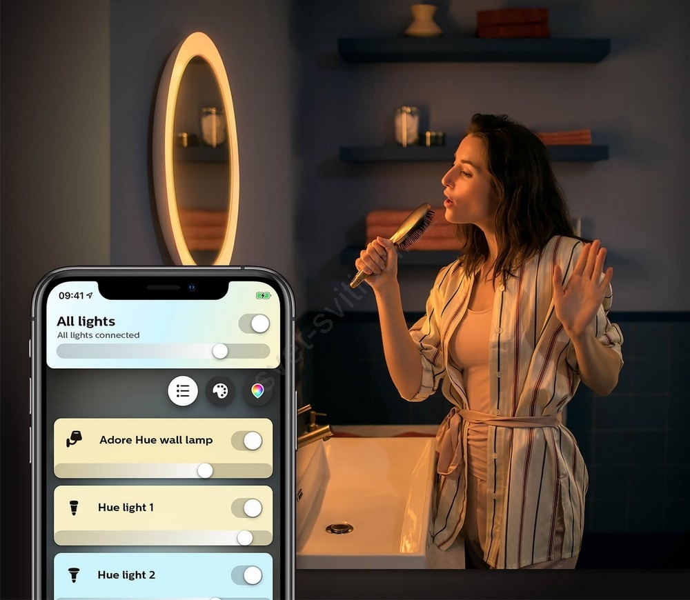 • Osvětlení zrcadla lze jednoduše ovládat pomocí mobilní aplikace Philip Hue ve Vašem mobilním zařízení či tabletu.