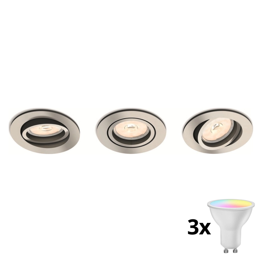 Philips - SADA 3x LED RGBW Stmívatelné podhledové svítidlo 1xGU10/4,8W/230V matný chrom + dálkové ovládání