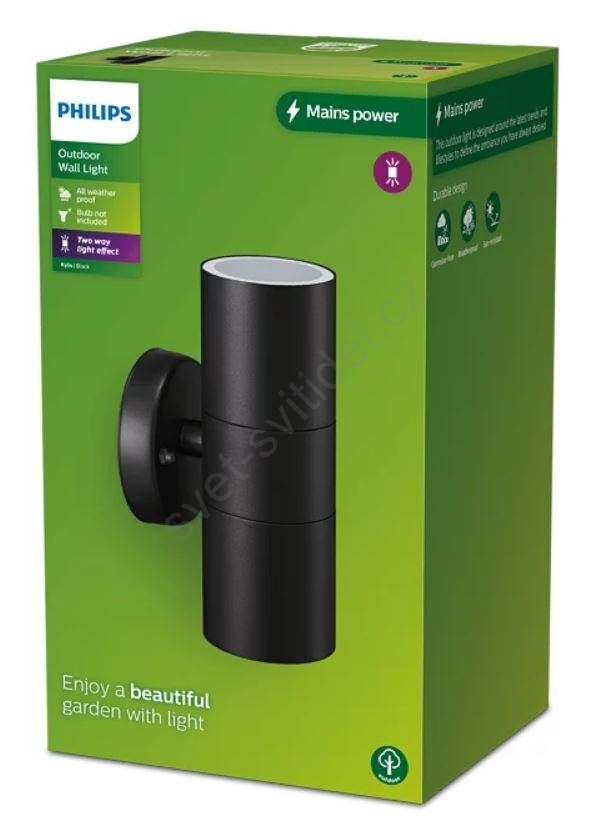 Philips - Venkovní nástěnné svítidlo KYLIS 2xGU10/25W/230V IP44 charakterizuje pěkný design a funkční provedení. Do svítidla je určena žárovka s paticí GU10. Zde si můžete koupit další žárovky za výhodnou cenu. Získáte tak zajímavý doplněk do svého domova.