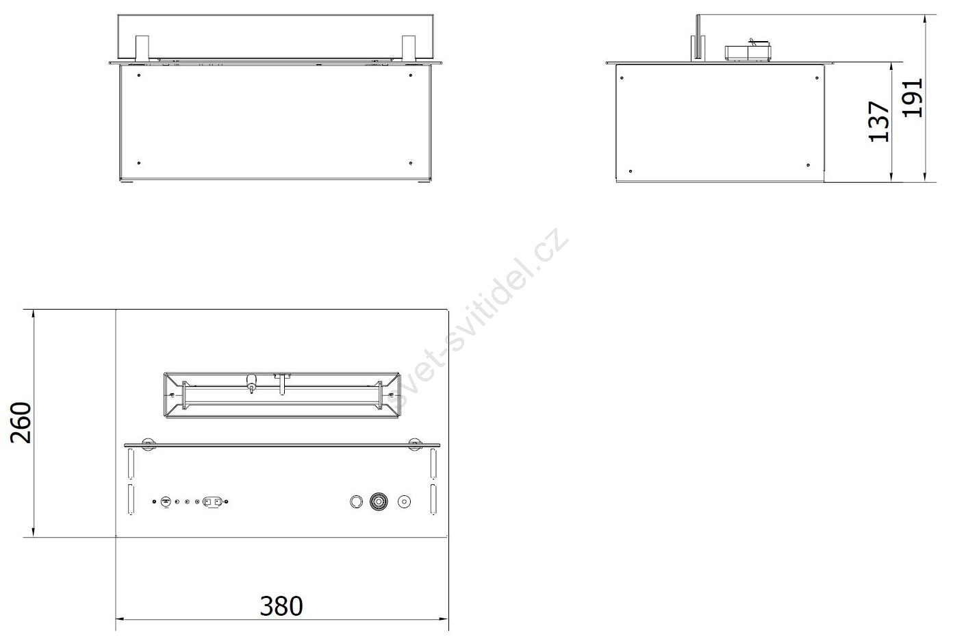 • Rozměry krbu:19,1 x 38 x 26 cm.