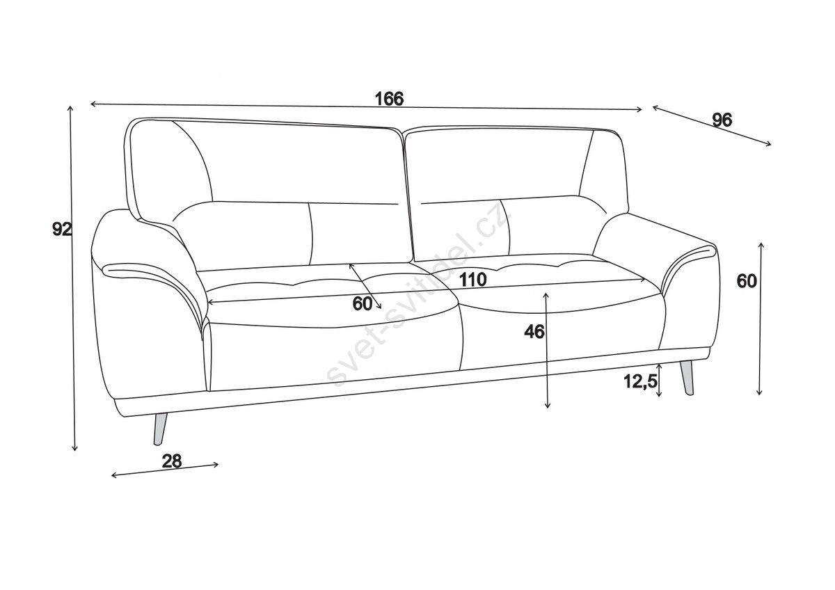 • S pohodlnou výškou sedáku 46 cm a hloubkou 60 cm zajišťuje ergonomické a relaxační sezení.
