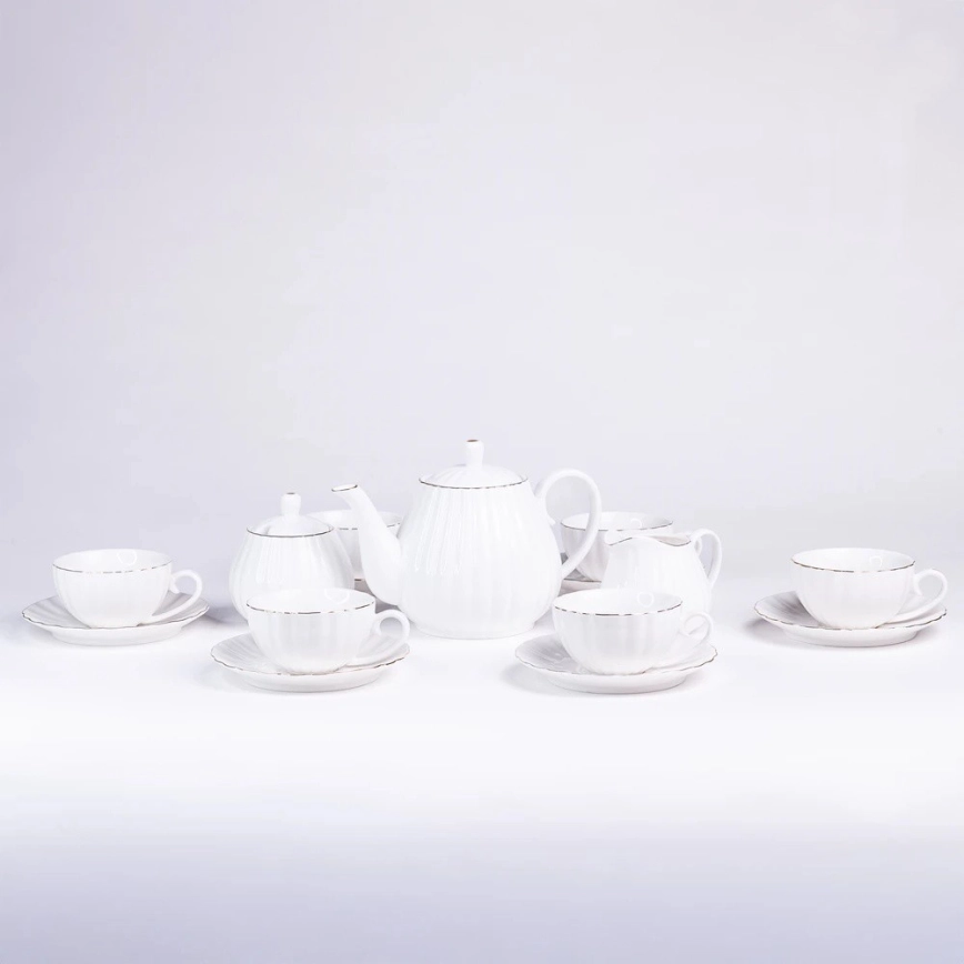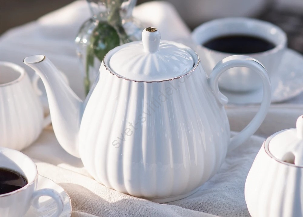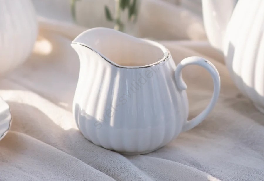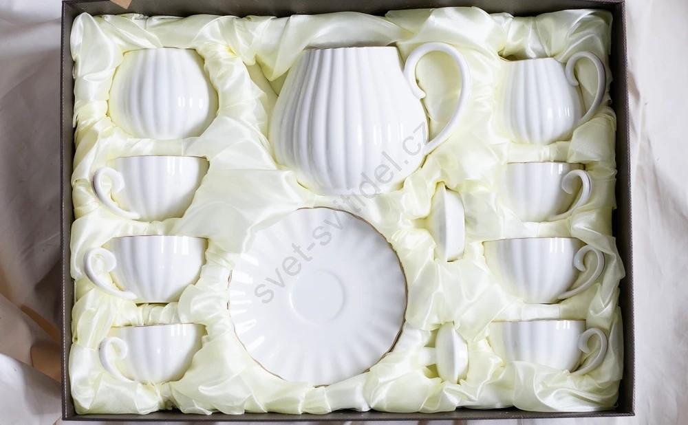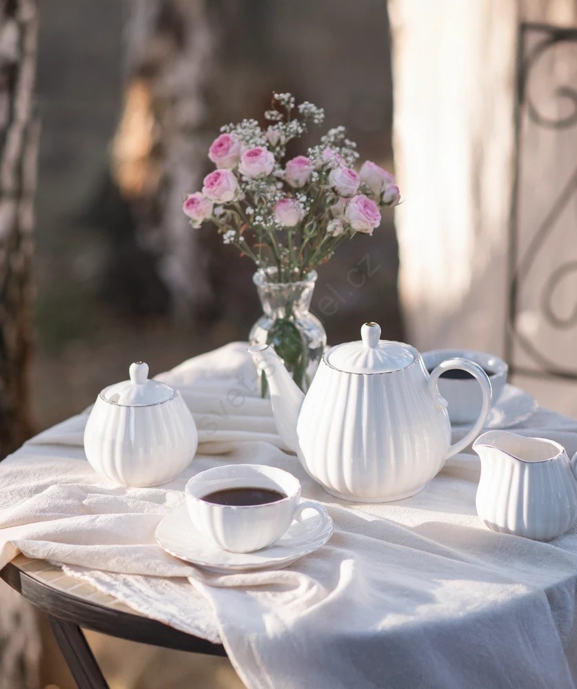 • Nadčasová sada porcelánového nádobí v bílé barvě.