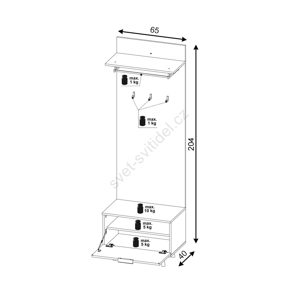 • Pod ní se nachází uzavřená přihrádka na boty, doplňky nebo další denní nezbytnosti.