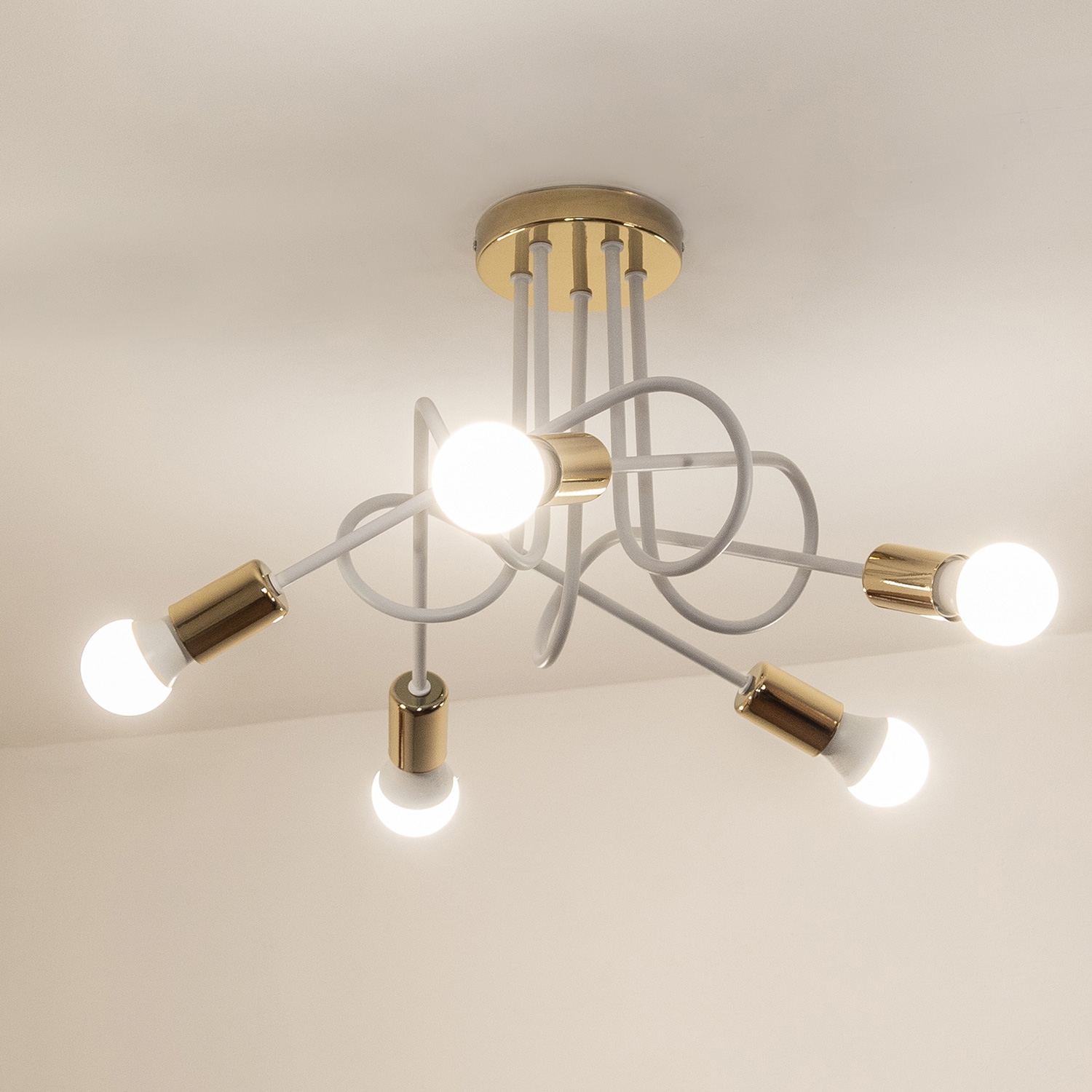 Přisazený lustr OXFORD 5xE27/15W/230V zlatá/bílá charakterizuje pěkný design a funkční provedení. Do svítidla je určena žárovka s paticí E27. Zde si můžete koupit další žárovky za výhodnou cenu. Získáte tak zajímavý doplněk do svého domova.