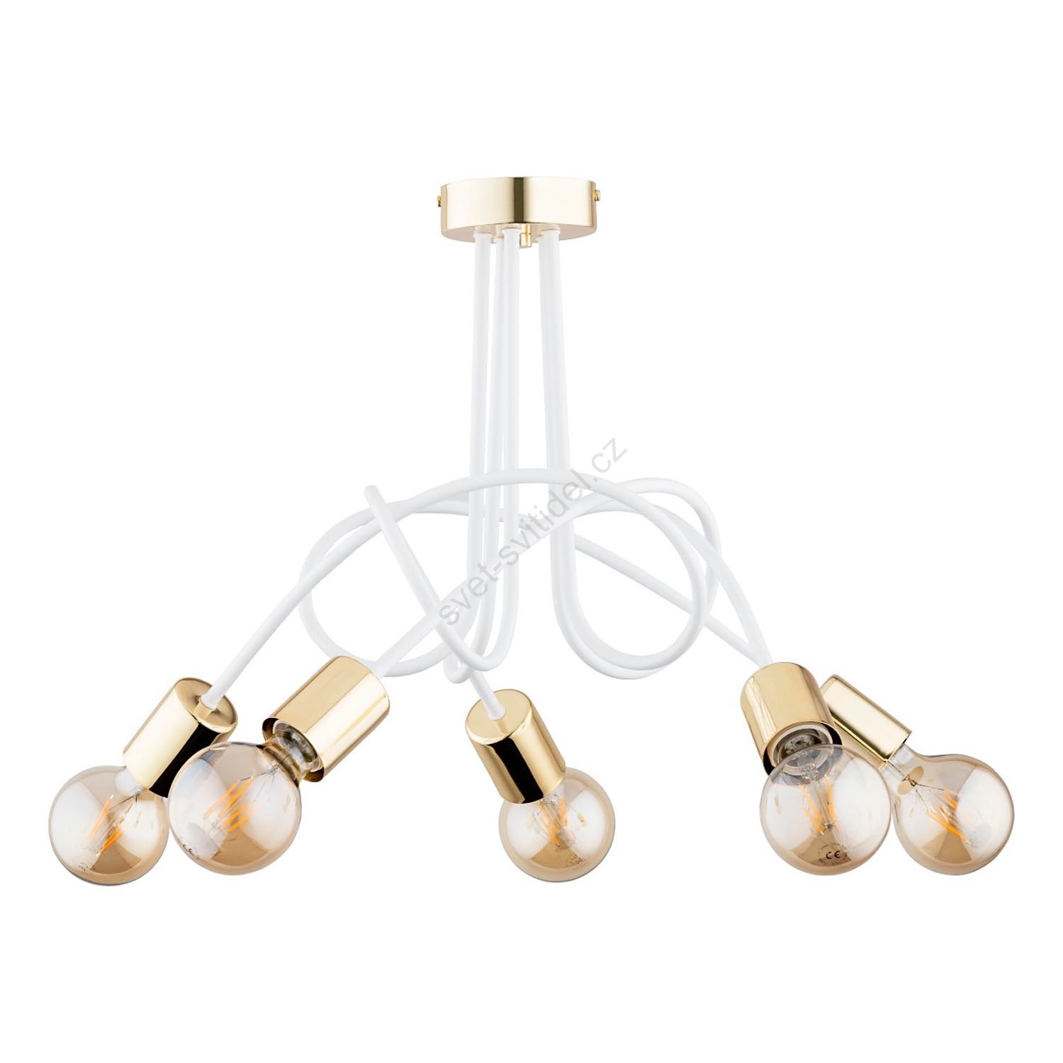 Přisazený lustr TANGO 5xE27/15W/230V bílá/zlatá charakterizuje pěkný design a funkční provedení. Do svítidla je určena žárovka s paticí E27. Zde si můžete koupit další žárovky za výhodnou cenu. Získáte tak zajímavý doplněk do svého domova.