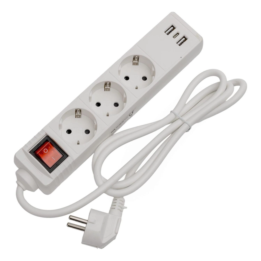 Prodlužovací kabel s vypínačem 3Z+2xUSB-A+1xUSB-C 1,5m SCHUKO bílá