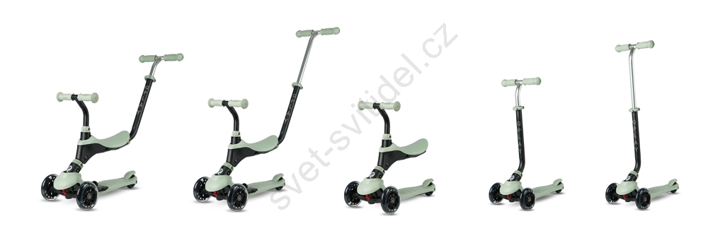 • Řídítka a sedlo rodiče jsou odnímatelné a mohou se používat jako normální koloběžka pro děti do 50 kg.