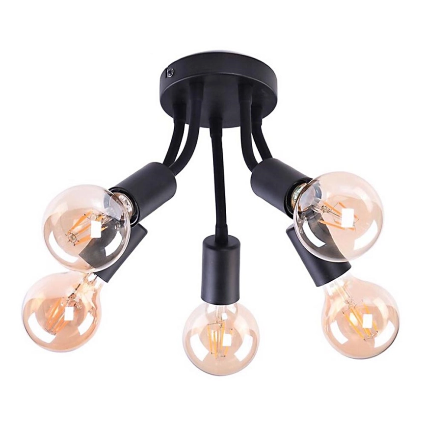 Stropní svítidlo Almus s pěti světly v průmyslovém stylu vyrobeno z kovu, s jednoduchým, ale poutavým designem, bude stylovým doplňkem vašeho domova. Černé svítidlo je doplněno malým, černým ozdobným podstavcem. Díky pěti světlometům směřujícím do různých směrů poskytuje Almus v dané místnosti rovnoměrné osvětlení. Stropní svítidlo je možné použít se pěti světelnými zdroji s výkonem do 60 W, s paticí typu E27. Podle vašeho vkusu ho můžete použít se zdroji teplého nebo přirozeného bílého světla. Almus má průměr 350 mm a vzdálenost 165 mm od stropu. Primárně doporučujeme tento model používat ve vašem obývacím pokoji. Svítidlo se dodává bez světelných zdrojů.