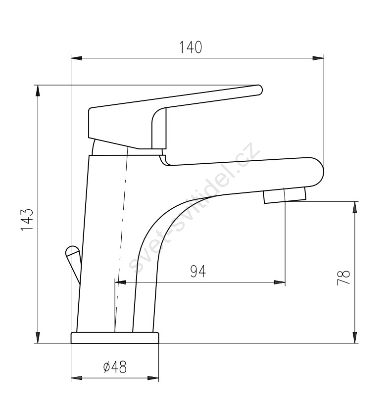 • Vodovodní stojánková umyvadlová baterie s výpustí.