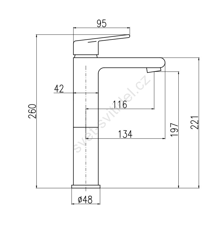 • Vodovodní stojánková umyvadlová baterie bez výpusti.