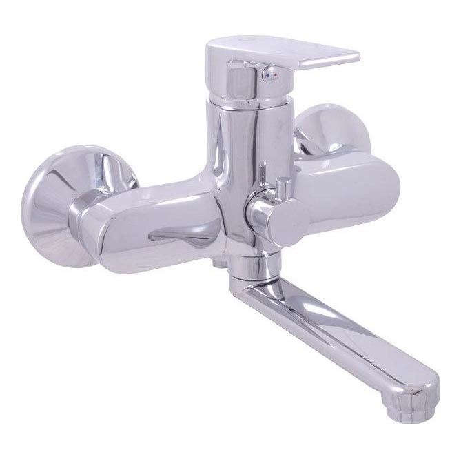 • Vodovodní stojánková vanová baterie s plochým otočným ramínkem.