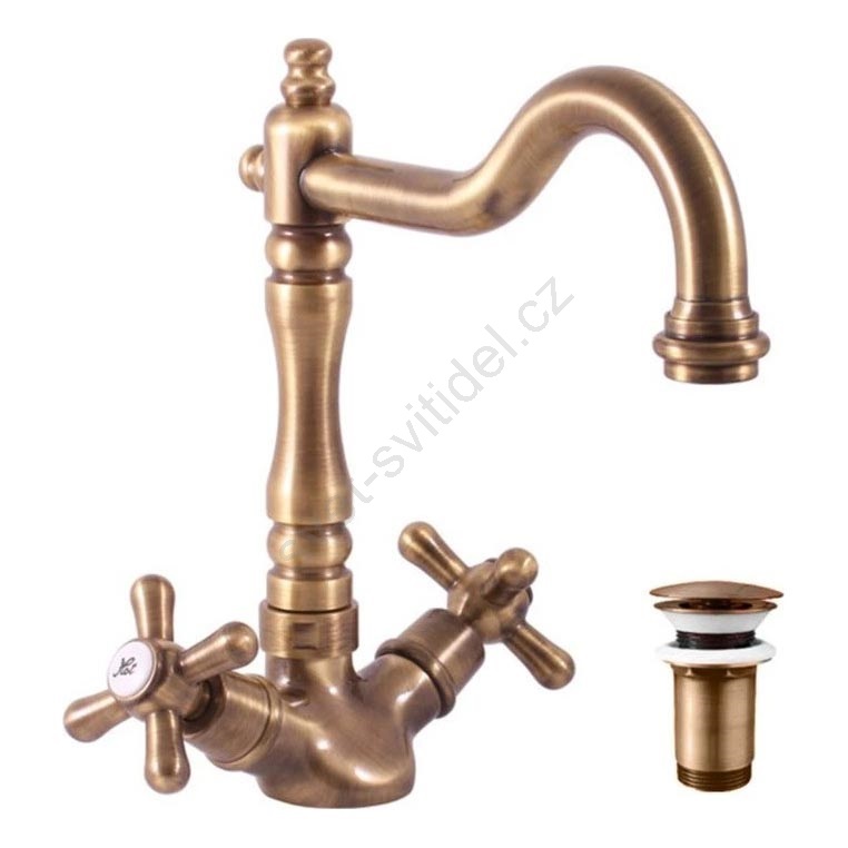 RAV Slezák MK121.0/8SM - Dřezová/umyvadlová baterie + výpusť MORAVA RETRO 22,4 cm stará mosaz
