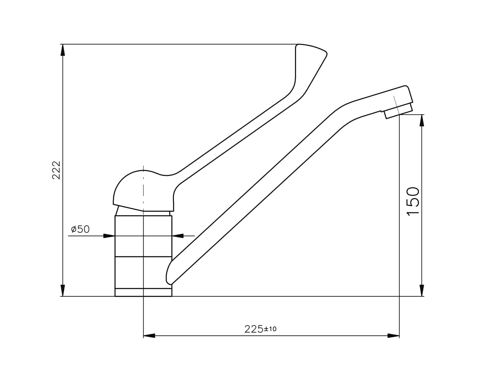 • Vodovodní stojánková umyvadlová baterie bez výpusti s lékařskou pákou.