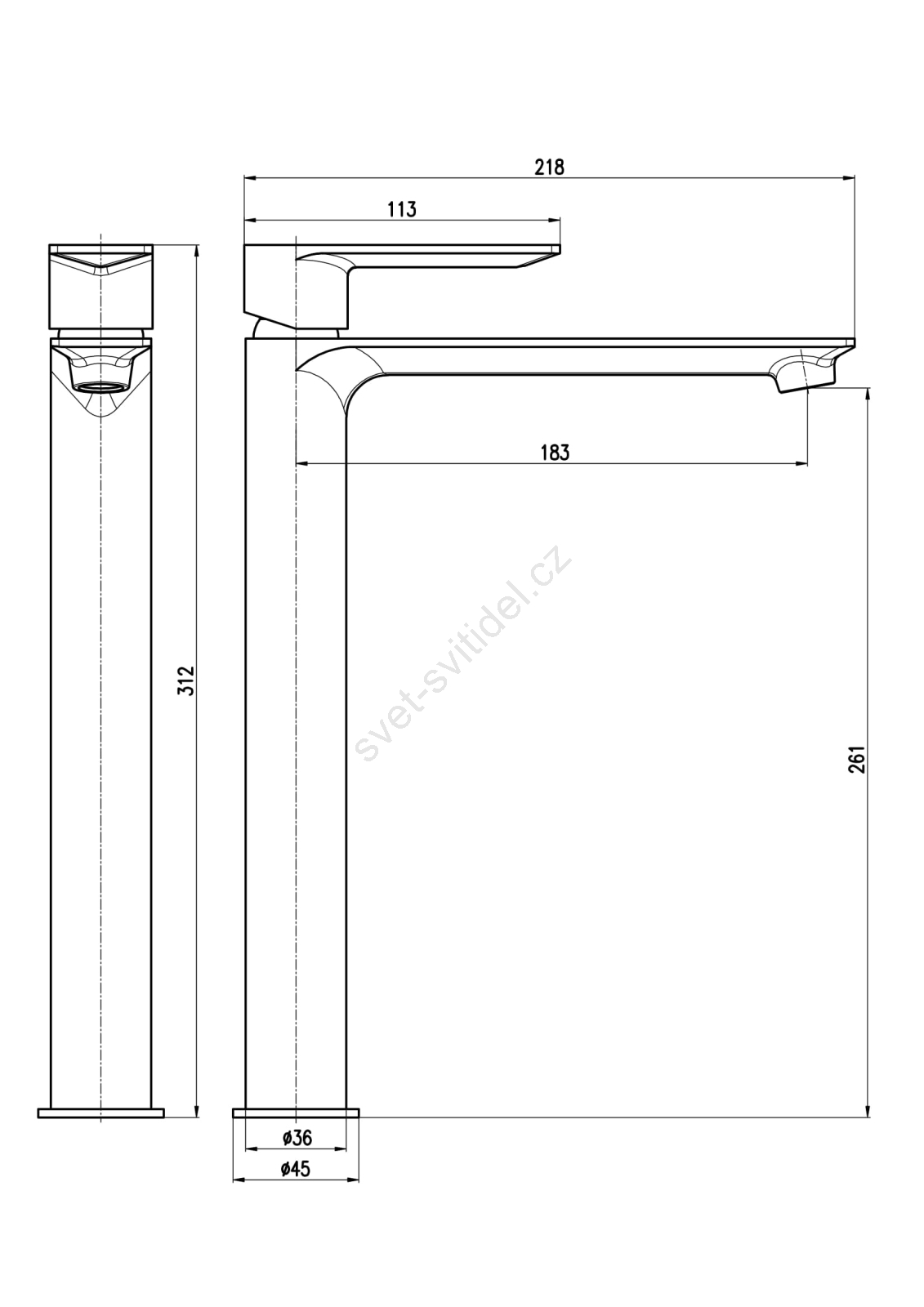 • Vodovodní stojánková umyvadlová baterie bez výpusti.