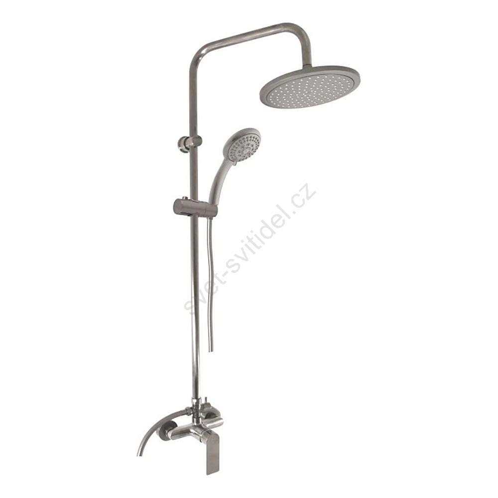 • Set obsahuje: sprchovou baterii, plastovou ruční sprchu s 5 funkcemi (pr. 100 mm), plastovou hlavovou sprchu (pr. 200 mm), sprchovou kovovou hadici (1500 mm), sprchovou tyč.