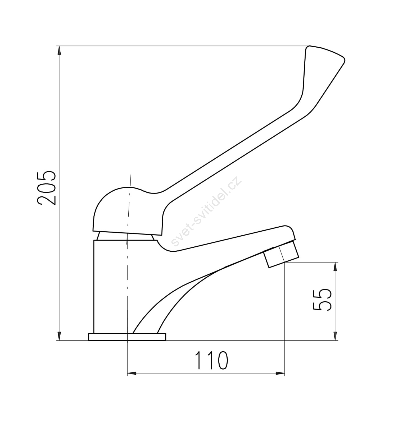 • Vodovodní stojánková umyvadlová baterie bez výpusti s lékařskou pákou.