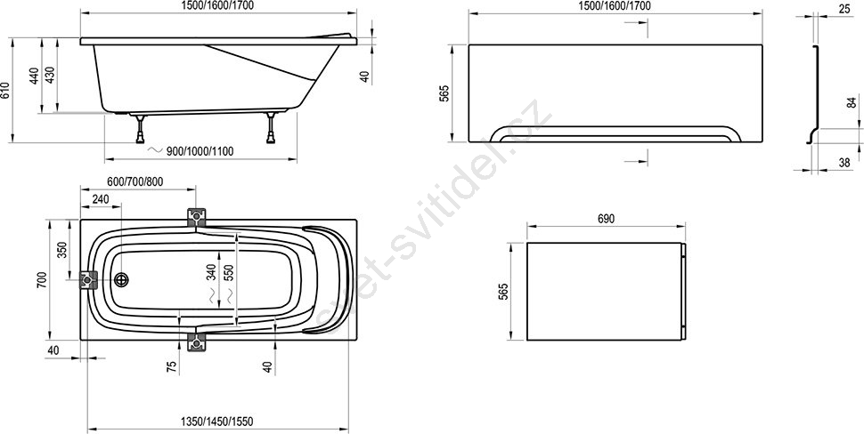 • Rozměry 150 x 70 cm a objem 165 l zajišťují příjemný prostor pro pohodlné koupání.