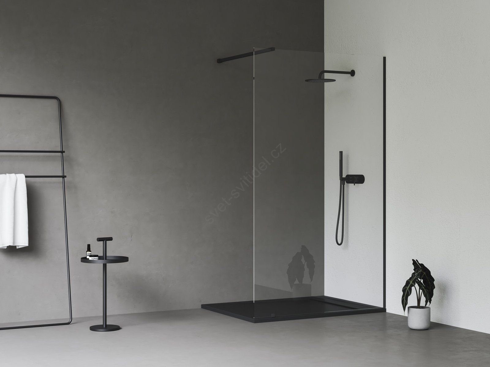 • Sprchový kout Walk-In Wall v černém provedení nabízí moderní a otevřený vstup, který lze přizpůsobit podle potřeby až do šířky 120 cm.