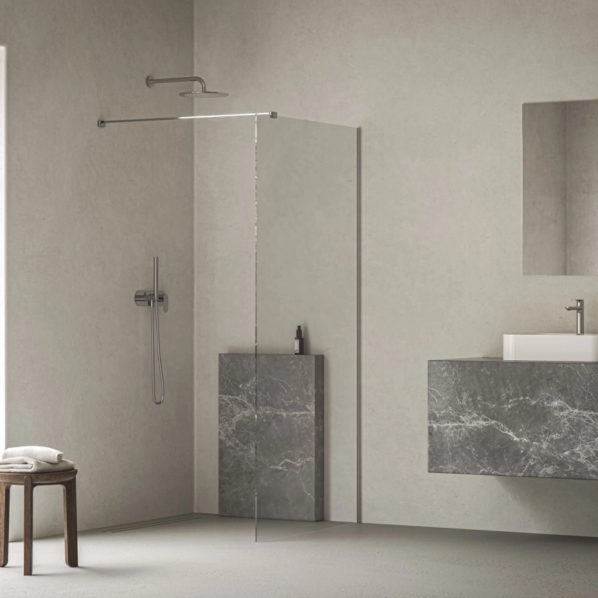 • Sprchový kout Walk-In Wall v chromovém provedení nabízí moderní a otevřený vstup, který lze přizpůsobit podle potřeby až do šířky 120 cm.