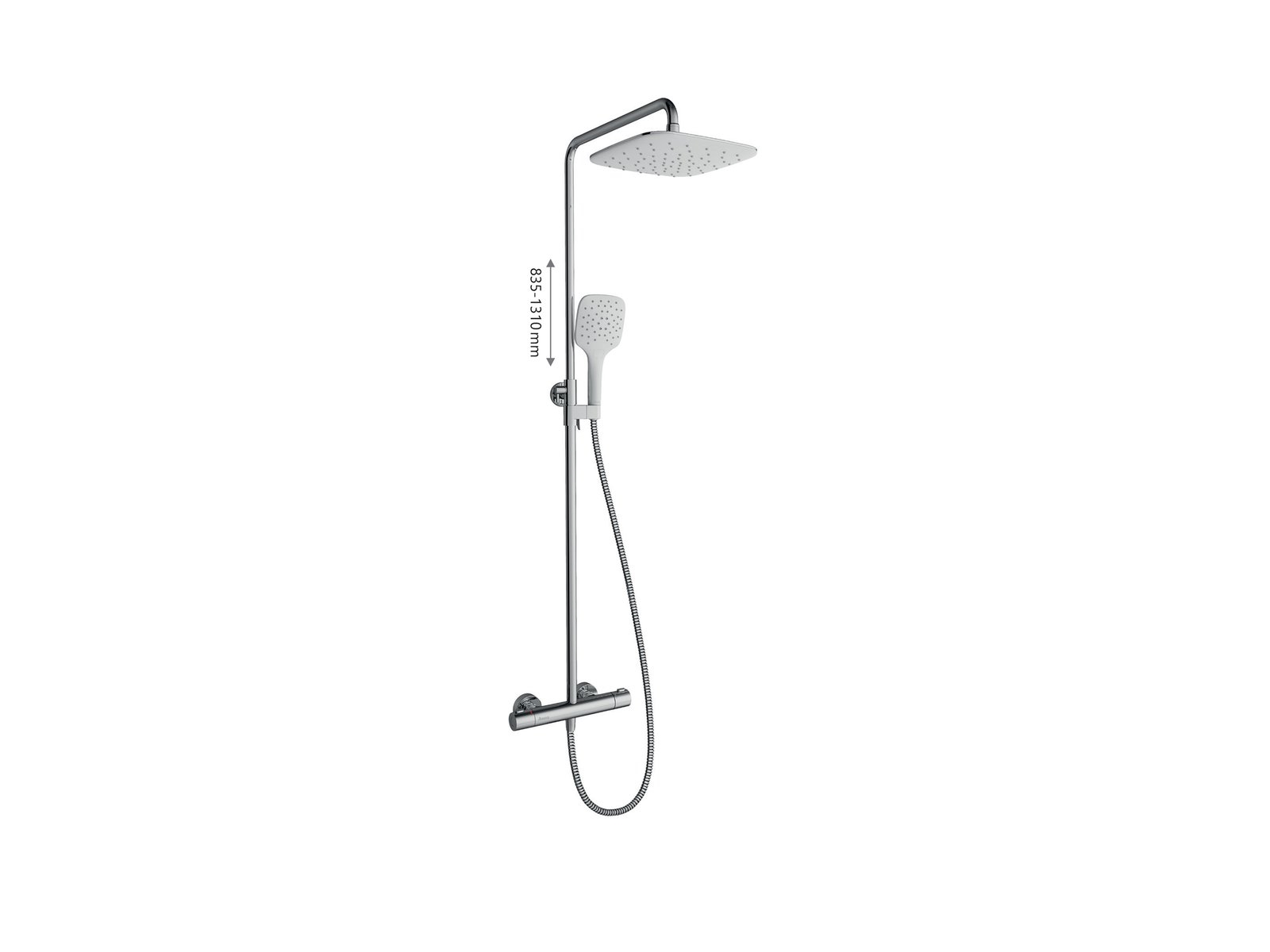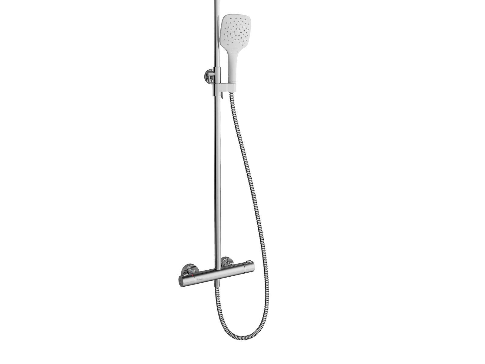 • Sprchový sloup Termo je posuvný set s termostatickou baterií v provedení lesklý chrom s bílou hlavovou sprchou.