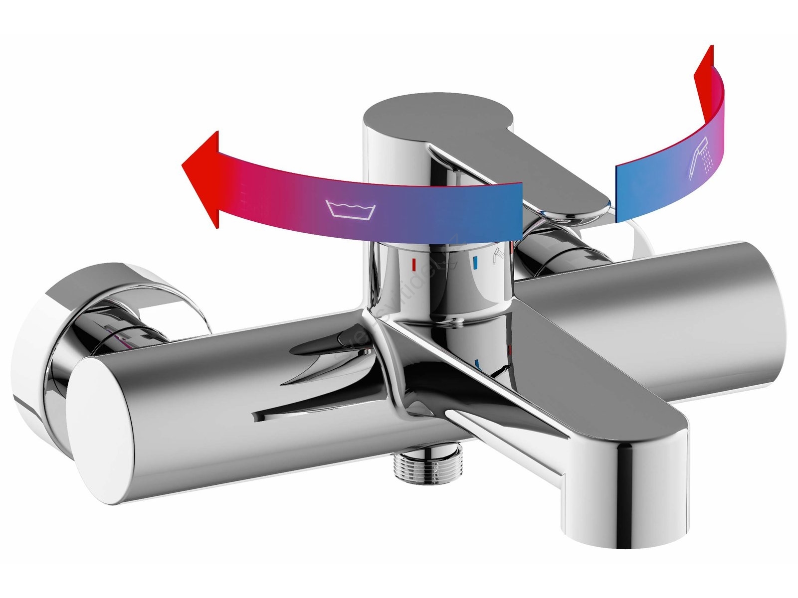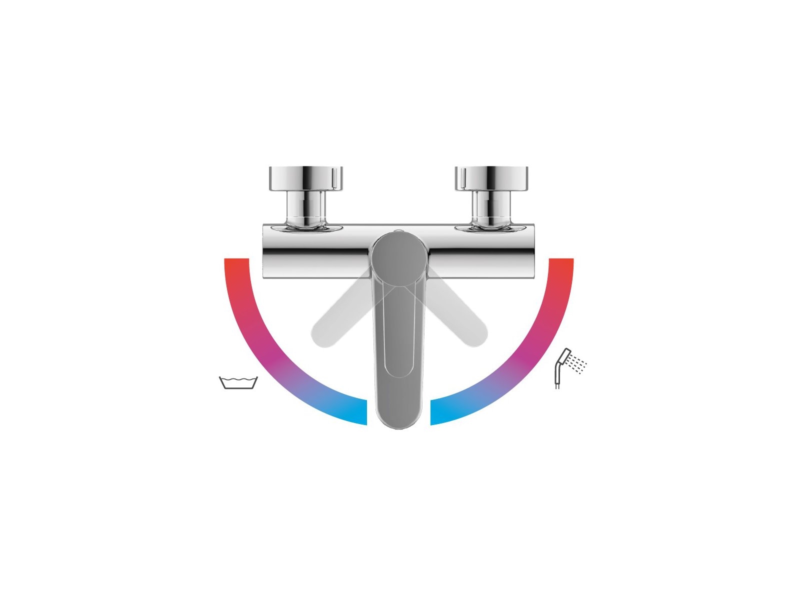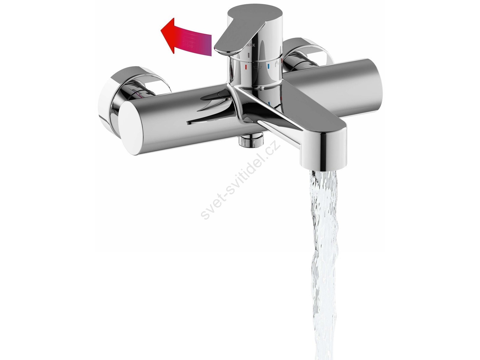 • Pohybem páky doprava (sprcha), či doleva (vana) se reguluje pouze teplota vody, průtok vody zůstává stabilní.