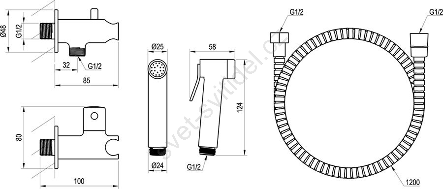 • Nástěnný ventil s bidetovou sprškou je dodáván v provedení lesklý chrom.