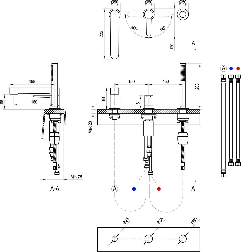 • Tato 3-otvorová vanová baterie je elegantním doplňkem každé koupelny.