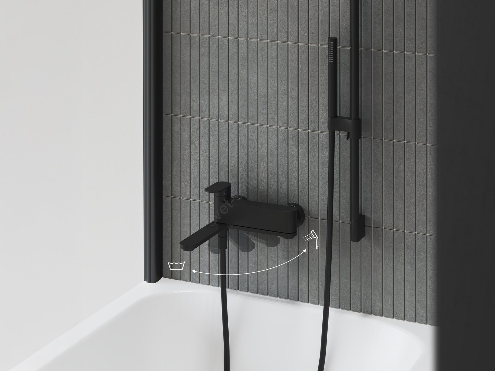 • Unikátní otočné přepínací ramínko spojuje funkci napouštění vany a přepínání na sprchu v jednom prvku.
