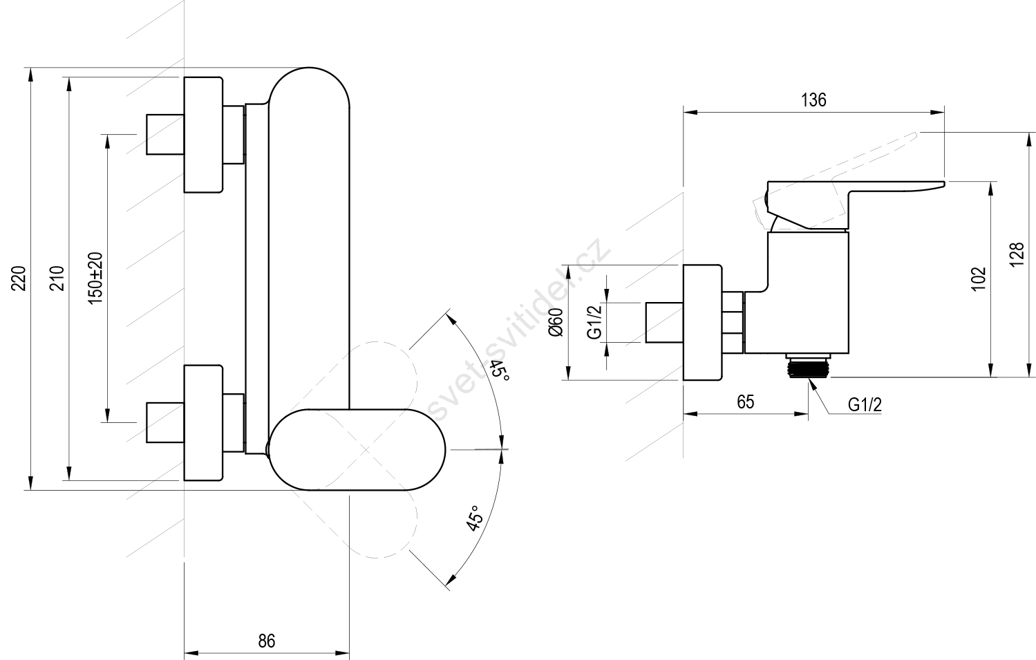 • Baterie je určena k instalaci do sprchových koutů Chrome i ke všem ostatním sprchovým koutům Ravak nebo jiným s jednou sprchou.