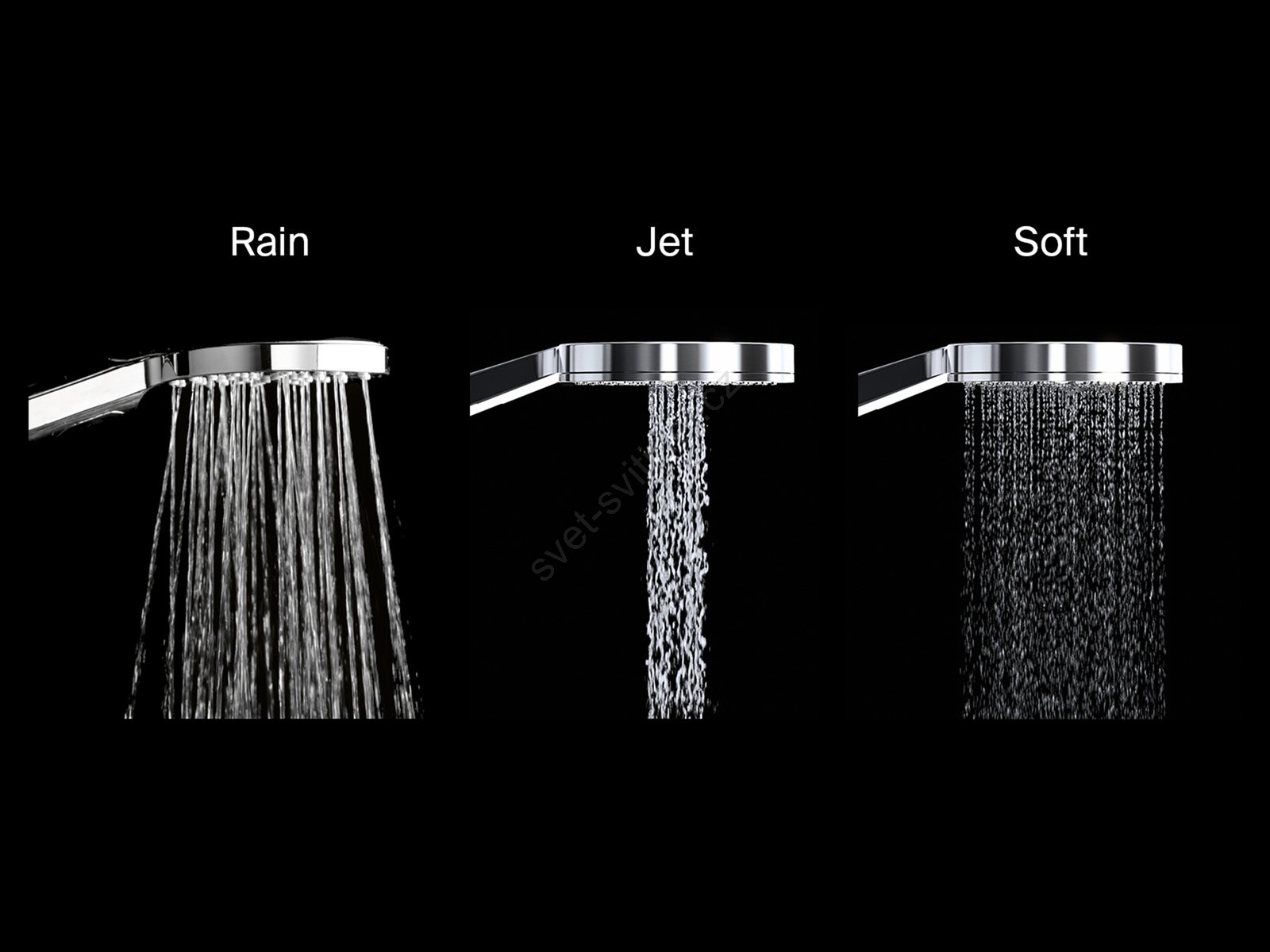 • Ruční sprcha Flat M nabízí tři funkce proudu vody – Rain, Jet a Soft.